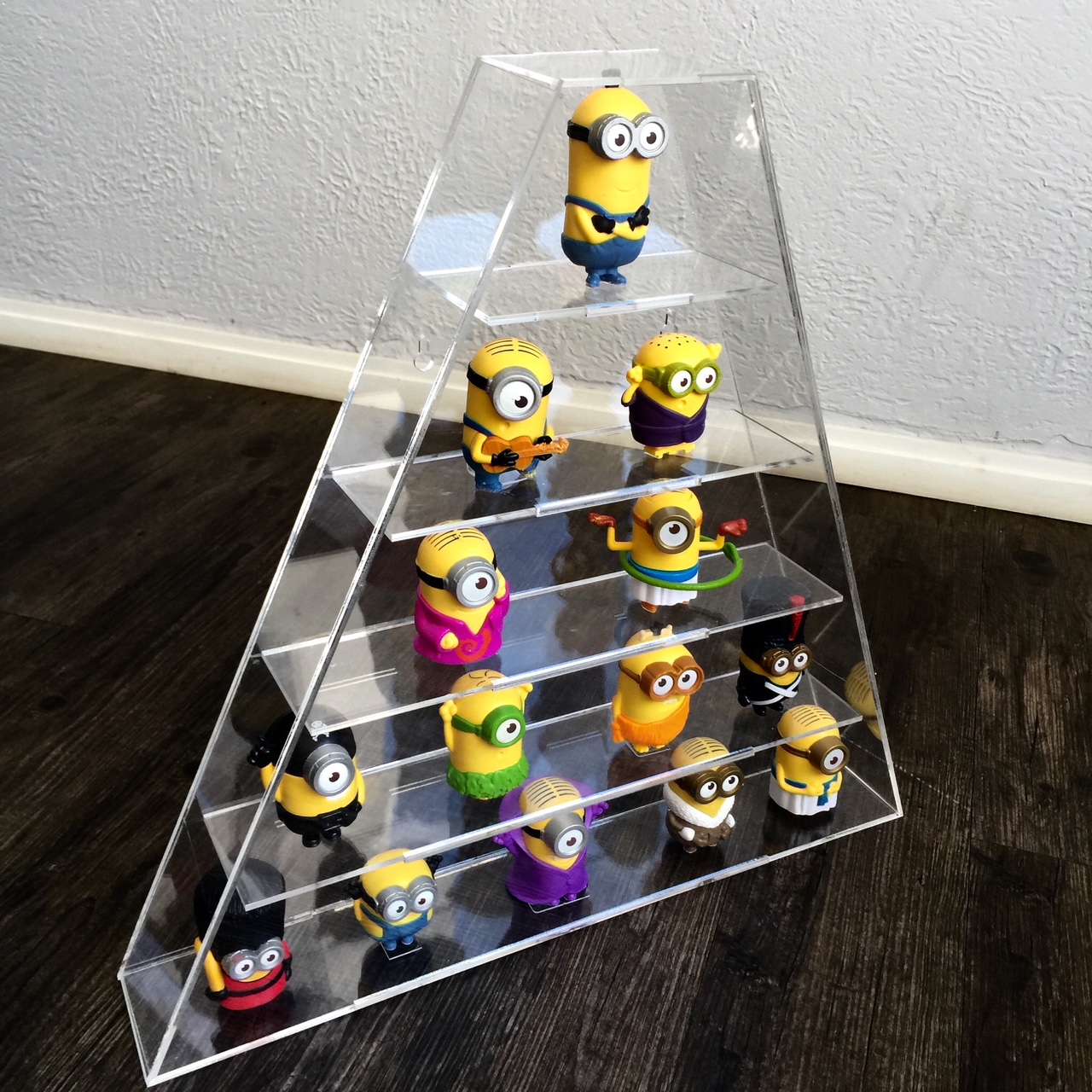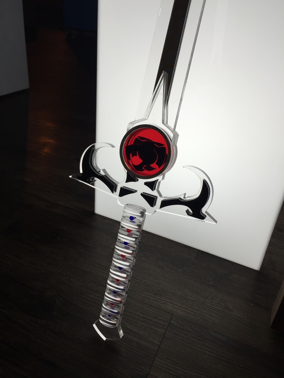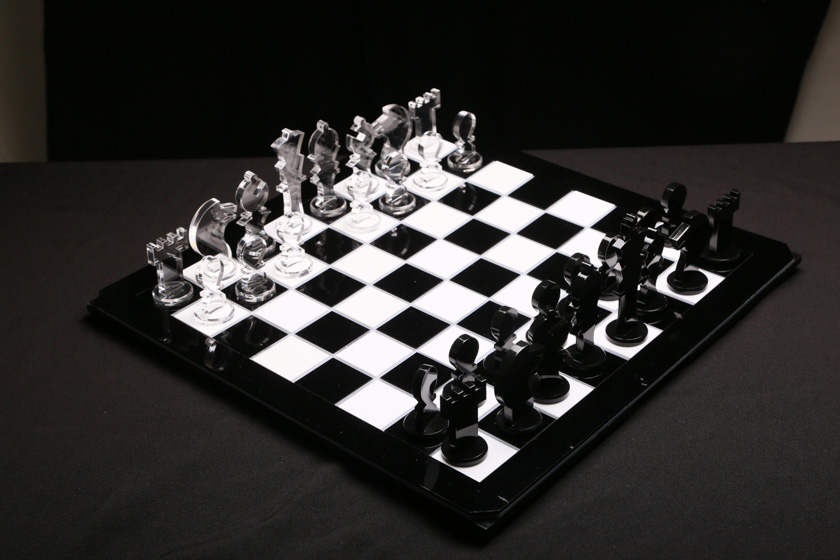 A atração de alguns colecionadores pelo acrílico vai além das peças expositoras. Às vezes o material dá vida inclusive às peças de coleções, como o tabuleiro de xadrez iluminado da MENAF, com peças em acrílico preto e cristal, e a reprodução da espada Justiceira da série de desenhos animados ThunderCats, da CENTAURI.
