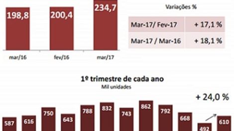 Pelo segundo mês consecutivo, a produção da indústria automobilística registrou crescimento. Em março foram fabricadas 234,7 mil unidades, com alta...