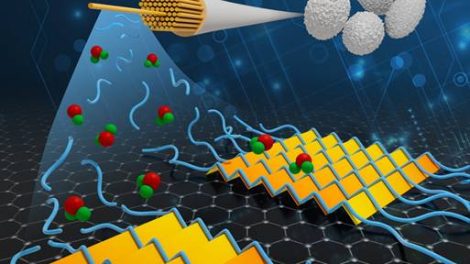 A deposição controlada de fibras de seda viabiliza a produção de vários dispositivos eletrônicos biodegradáveis. A ilustração mostra as fibroínas...