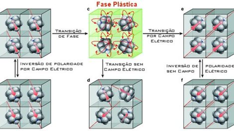 O novo cristal plástico é ferroelétrico a temperatura ambiente, alternando para uma fase plástica e mais flexível a temperaturas mais elevadas...