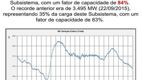 Foram 3.689 MW responsáveis por 46 % de atendimento da demanda do Subsistema Nordeste com fator de capacidade de 84% Segundo dados do Operador...