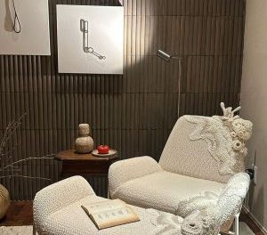 Em ambiente assinado pela arquiteta Beatriz Quinelato, a Srta. Galante apresenta sua versão da Poltrona Lina, feita à mão em tricô e crochê...