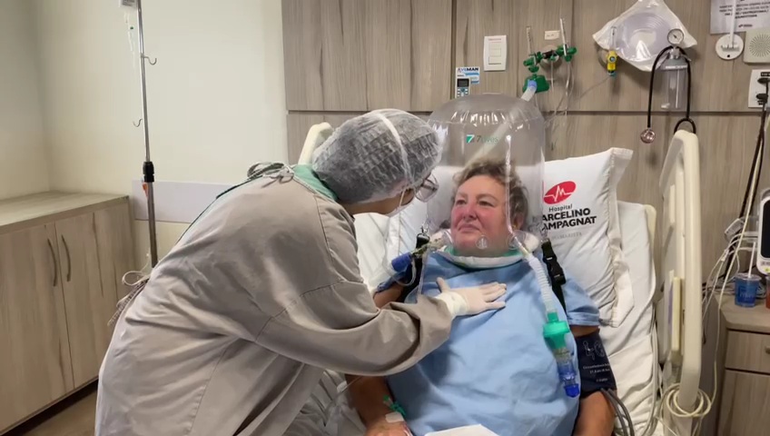 “O paciente fica muito mais confortável, consegue realizar melhor os exercícios de fisioterapia tão importantes para fortalecimento dos pulmões e, ao mesmo tempo, os riscos de contaminação da equipe diminuem já que impossibilita que as gotículas respiratórias saiam da cápsula”, frisa a fisioterapeuta.