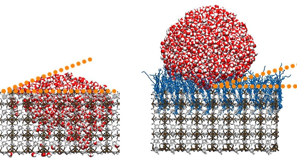 Criado um material com repelência à água quase perfeita Adicionar Comentário Esquerda: Substrato poroso com um pequeno ângulo de contato com a água: A...