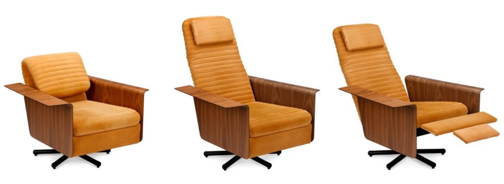 Os assentos do avião Jumbo 747, que encerrou sua produção em 2022 e marcou para sempre a história da aviação, são a inspiração para a poltrona 747, clássico da marca que agora ganhou a companhia do sofá em uma linha única. A peça oferece três posições ergonômicas diferentes.