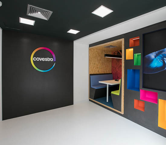 O prédio é também um importante showroom das soluções desenvolvidas com os principais parceiros da empresa na região – no espaço foram utilizadas diversas tecnologias feitas a partir de materiais da Covestro. Por exemplo, 100% dos interruptores e tomadas instalados no prédio utilizam Makrolon®, policarbonato fabricado pela Covestro, e as pinturas de áreas horizontais de alto tráfego foram feitas com poliuretanos base água da Covestro.