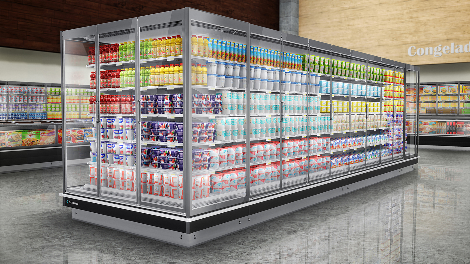 O novo e exclusivo sistema de precificação, patenteado pela Eletrofrio, é regulável e facilita a visualização dos preços sem interferir na exposição das mercadorias. Além disso, novas opções de acabamentos com chapas revestidas de alta resistência mecânica e química, superior à pintura e à plotagem, permitem uma maior flexibilidade na personalização dos setores nas lojas. As chapas revestidas são materiais de alta tecnologia, fabricados e importados da Europa, que não descolam e nem desbotam.