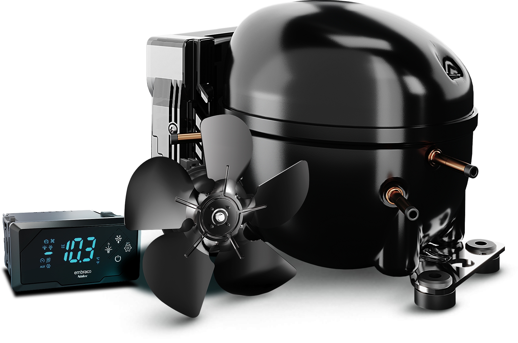 Entre os produtos para refrigeração residencial, o destaque foi para o compressor mais compacto do portfólio, o Embraco Atom, com apenas cerca de 2,5 kg, e projetado para tornar a tecnologia de velocidade variável mais acessível a todos os tipos de refrigeradores domésticos.