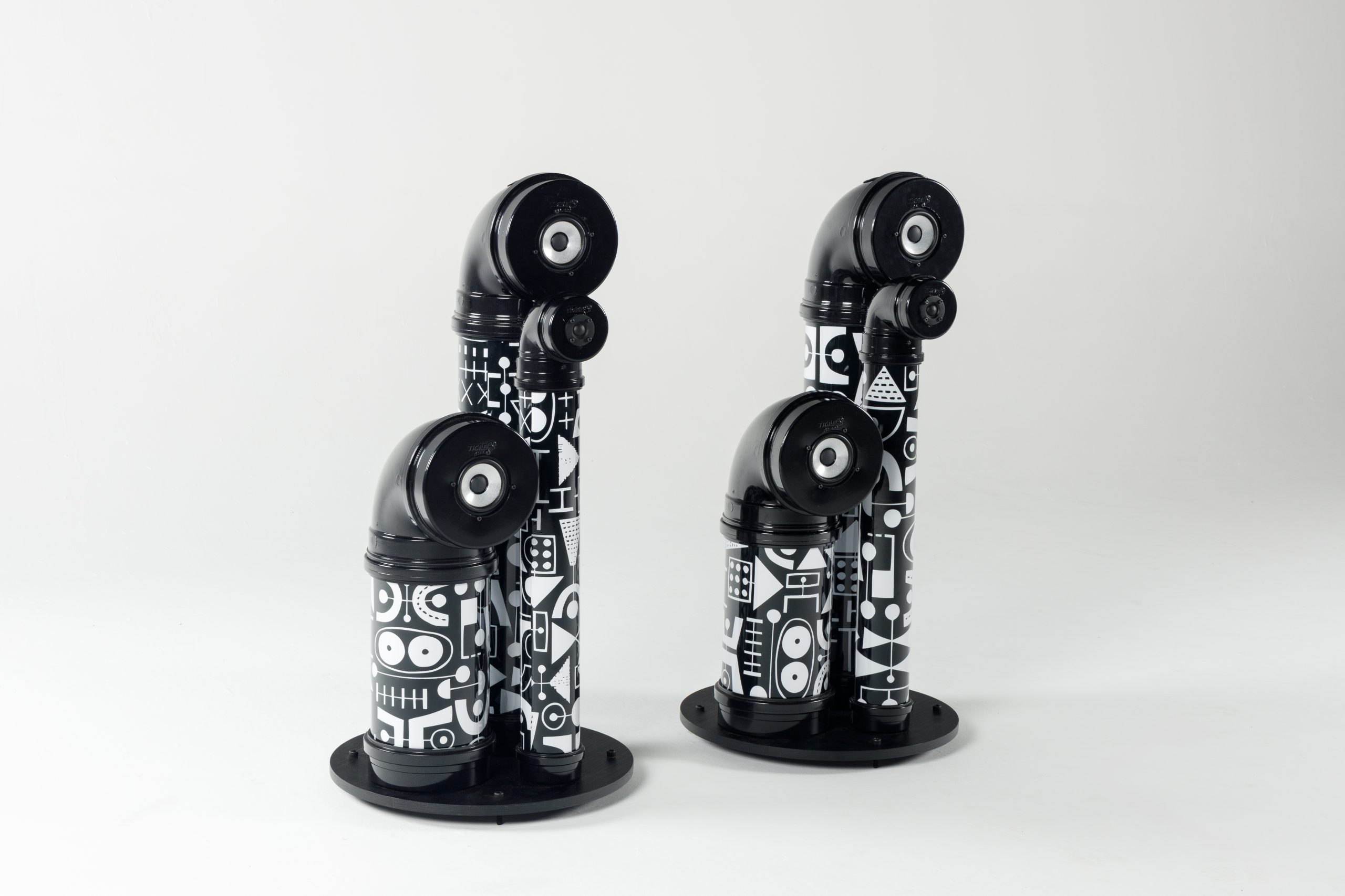 A caixa de som Conexão 03, construída com tubos de grandes dimensões, é uma peça provocativa e lúdica que combina excelência sonora com um design inovador. O uso de auto-falantes e tweeters da renomada marca Thorens, além de conexões banhadas a ouro, proporcionam ressonância acústica ideal, reprodução de áudio precisa e alta fidelidade na qualidade sonora.