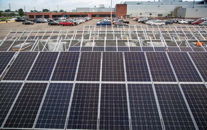 A General Motors planeja gerar ou ser fonte a energia elétrica 100% vinda de energias renováveis – como a eólica, solar e de gás de aterro – até 2050 para suas 350 operações em 59 países.