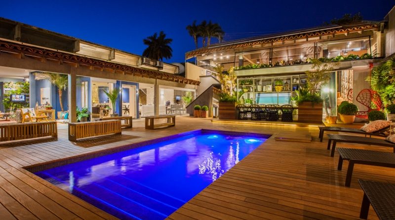 As piscinas da CASA COR Paraíba possuem iluminação individual com LED e também em arcos (Abilight Jet Color), além de hidromassagem, filtragem e sistema de automação (Eletronic System).