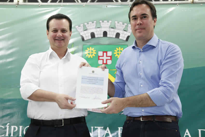 O ministro das Cidades, Gilberto Kassab, anuncia a contratação de investimentos no valor de R$ 19,77 milhões para a implantação da Estação de Tratamento de Esgoto (ETE) Barrocão – 1ª Etapa, no município de Santa Bárbara D’Oeste, na região metropolitana de Campinas, interior do Estado de São Paulo. Os recursos fazem parte do Programa de Aceleração do Crescimento (PAC 2), que visa a promoção dos serviços públicos de saneamento básico, proporcionando melhoria das condições de saúde e de qualidade de vida à população. Estima-se que 115 mil habitantes sejam beneficiados com as obras.