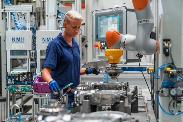 A fábrica do BMW Group em Dingolfing, na Alemanha, conta com um robô preso ao teto cuja função é erguer as engrenagens, que pesam cerca de 5,5 quilos, e encaixá-las perfeitamente sem causar danos às rodas dentadas. Este tipo de trabalho torna-se altamente seguro à medida que sensores especiais monitoram todo o processo e pausam o trabalho imediatamente se um obstáculo for detectado.