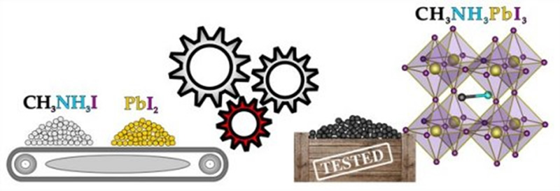 Para sintetizar mecanicamente as perovskitas, a equipe usou um moinho de bolas no qual são inseridos dois pós: um branco, o iodedo metilamônio (CH3NH3I), e outro amarelo, o iodedo de chumbo (PbI2). “Depois de alguns minutos de moagem, não fica nenhum traço dos ingredientes. Dentro do moinho fica apenas um pó preto homogêneo, a perovskita CH3NH3PbI3,” explica Anna Maria Cieslak, da Academia Polonesa de Ciências.