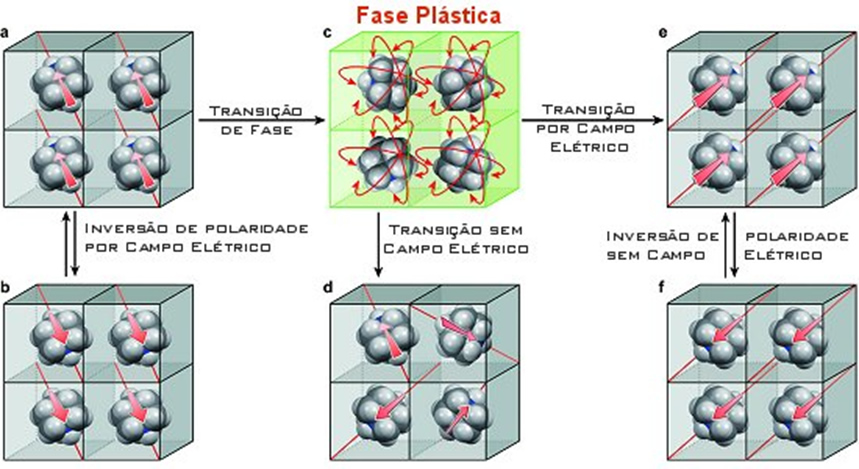 O novo cristal plástico é ferroelétrico a temperatura ambiente, alternando para uma fase plástica e mais flexível a temperaturas mais elevadas. Nessas temperaturas mais elevadas, as moléculas do cristal apresentam eixos de polaridade aleatórios, mas podem ser alinhados em uma direção específica através da aplicação de uma corrente elétrica à medida que o cristal esfria, o que significa que ele pode ser trazido de volta para um estado ferroelétrico com uma polarização forte e robusta.