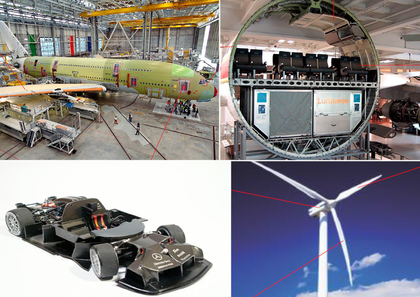 - componentes internos de termoplásticos reforçados p/ aeronaves comerciais e militares