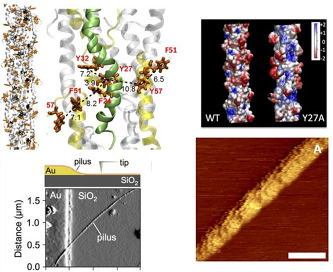Este nanofio microbiano é formado por uma única subunidade de peptídeo, medindo cerca de 2 nanômetros de diâmetro.