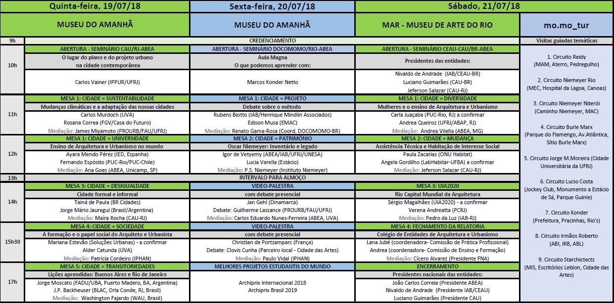 As discussões irão tratar de alguns dos temas mais relevantes para a cidade contemporânea, como “mudanças climáticas e a adaptação das nossas cidades”, “o papel social do arquiteto e urbanista” e “mulheres e o ensino de Arquitetura e Urbanismo”. O evento promete explorar diversas narrativas da cidade. “O Cidade = Universidade irá promover um debate importante sobre o futuro do urbanismo ao comparar práticas de ensino no Brasil e no mundo. Além disso, o Seminário deverá ser o ponto inicial de uma cultura de turismo especializado em Arquitetura e Urbanismo, na única cidade do mundo a ter o título de Patrimônio da UNESCO como paisagem cultural urbana”, ressalta Carlos Eduardo Nunes-Ferreira, Diretor da ABEA e Pró-reitor de Graduação da Universidade Veiga de Almeida, que forma com Wanda Vilhena e Igor de Vetyemy, o trio de idealizadores do evento.