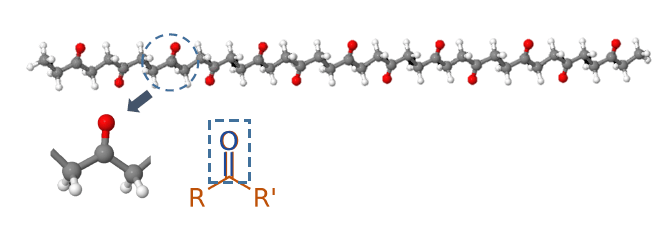 Essa simetria molecular, juntamente com a flexibilidade da cadeia em consequência do grupo cetona que é responsável por criar uma forte atração entre as cadeias poliméricas, aumentam a cristalização, promovendo algumas propriedades como: