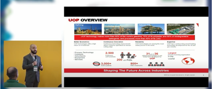 O palestrante foi André Dorta, que é gerente comercial para a América Latina da Honeywell UOP, portfólio de Adsorventes. Dorta é bacharel em Engenharia Química pela Oswaldo Cruz e tem MBA pela FIA. Possui mais de 13 anos de experiência na indústria química, trabalhando como formulador de sistemas de poliuretano, engenheiro de aplicação em campo e vendedor técnico em diferentes companhias do setor. Mostrou a linha de peneiras moleculares para formulações em construção civil da Honeywell UOP.