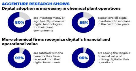 A adoção da tecnologia digital vem aumentando na indústria química, com cada vez mais empresas reconhecendo seus benefícios nas áreas financeira e operacional, segundo o novo estudo da Accenture (NYSE: ACN) “Digital Technology in Chemical Plant Operations”. Mas as tecnologias digitais ainda estão nos primeiros estágios de implantação nos chãos de fábrica.